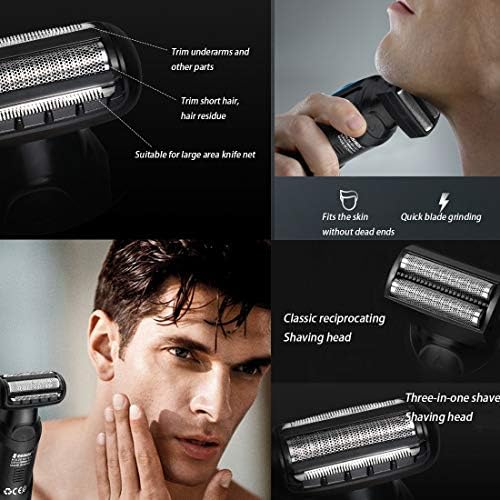 Product accessories: host + barber head + carving head + nose hair trimmer + temple head + shaving head + English manual + USB charging cable + cleaning brush.